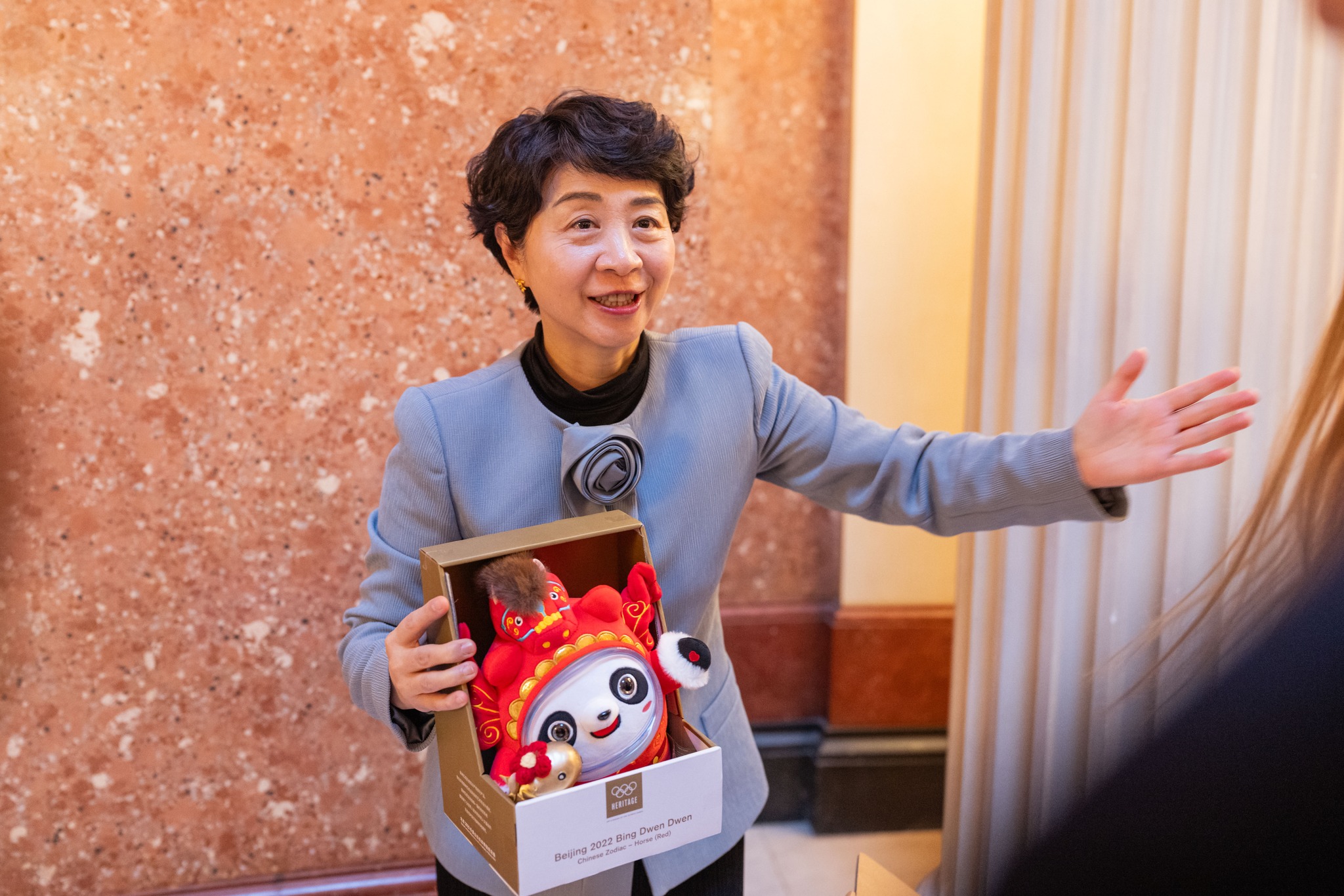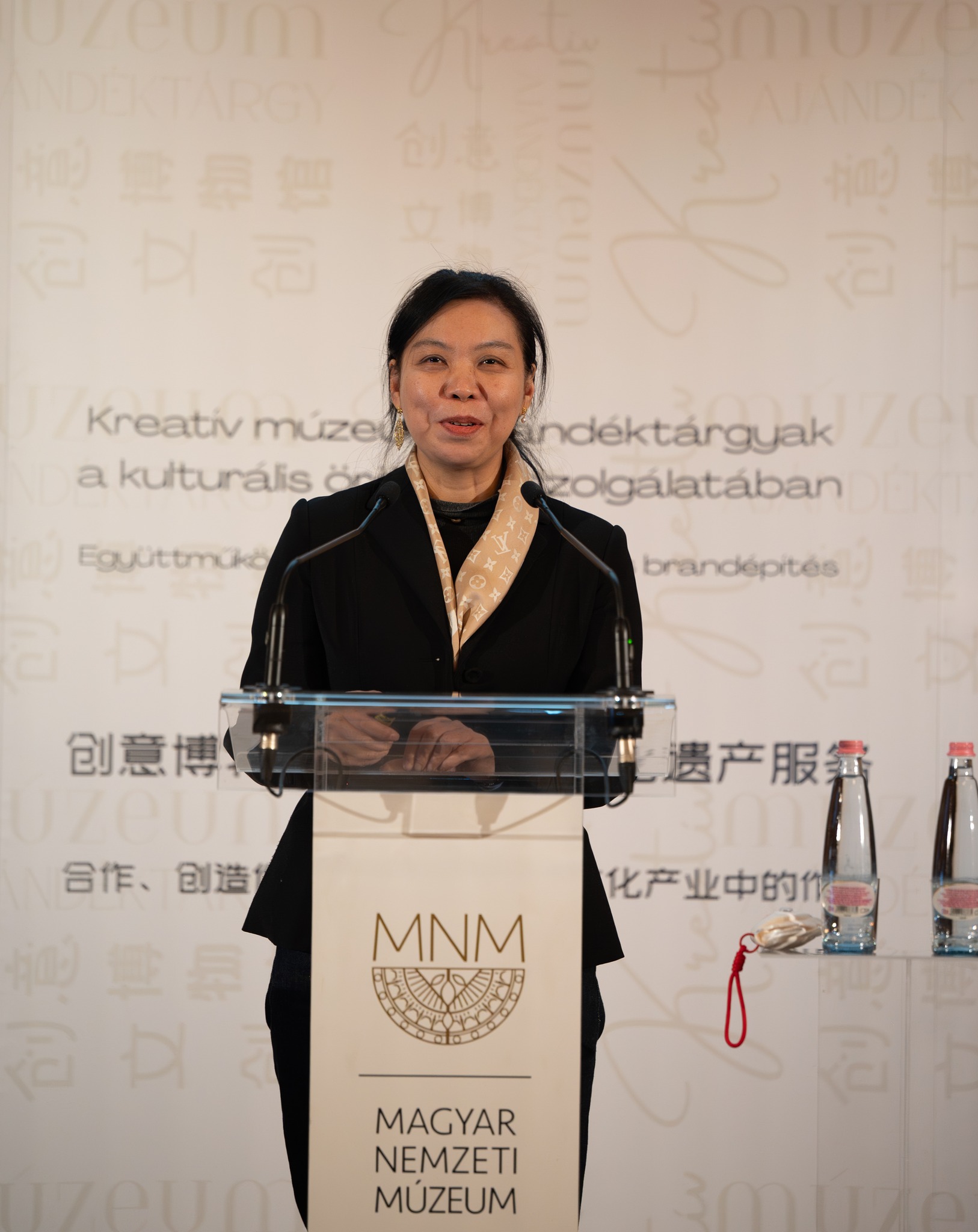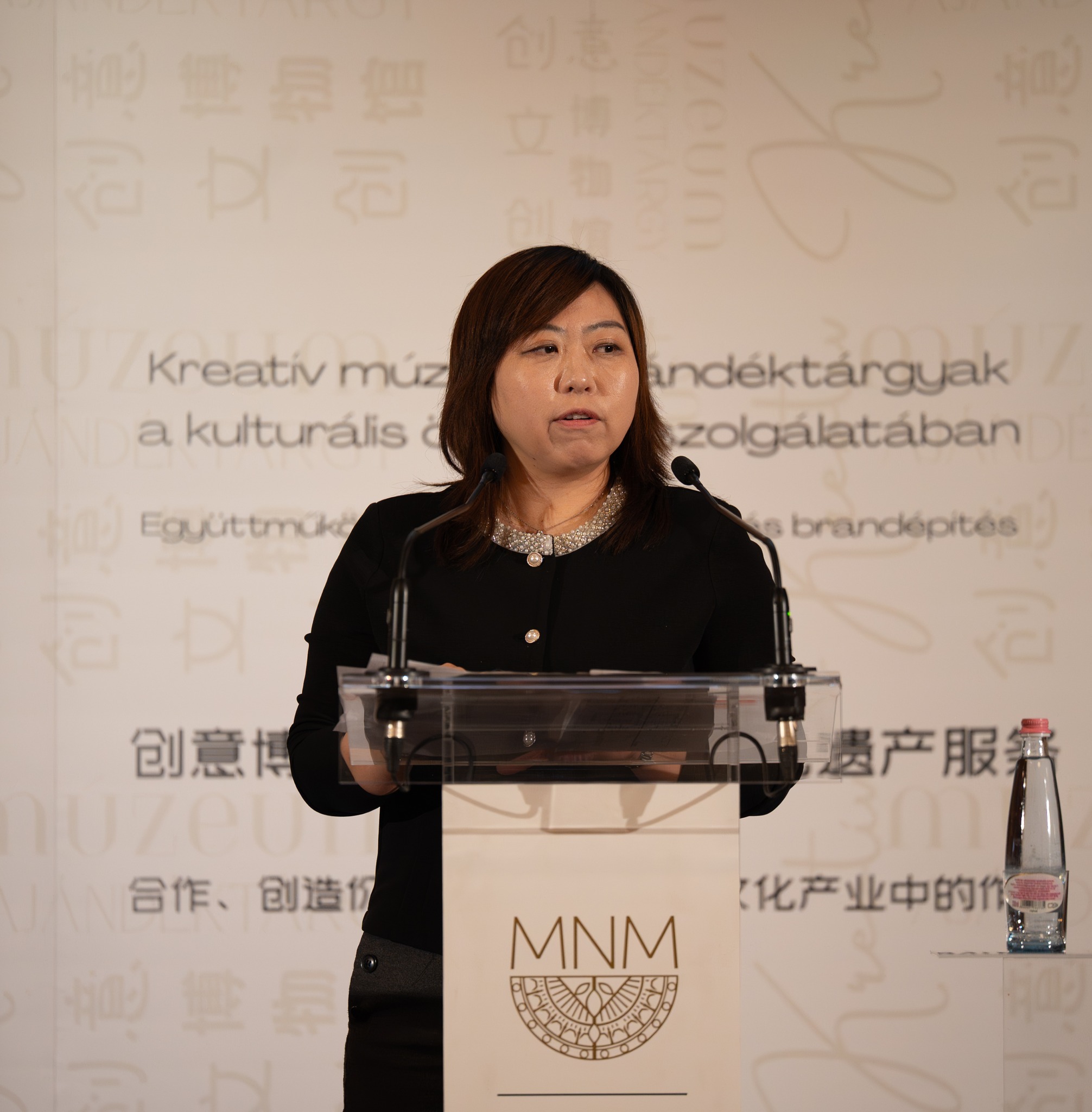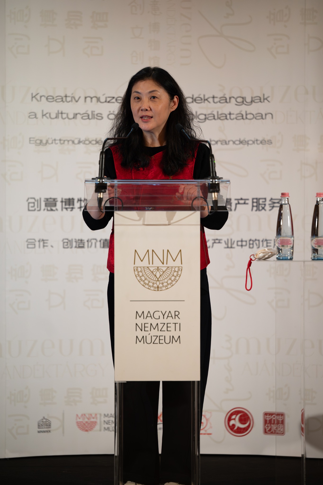 Köszöntőt mondott Dr. habil. Zsigmond Gábor, a Magyar Nemzeti Múzeum Közgyűjteményi Központ főigazgatója, Professzor Li Jiashan, a Kínai Nemzeti Kultúrafejlesztési Nemzetközi Stratégiai Kutatóintézet (中国文化产业发展研究中心) igazgatója és Nagy Judit Éva, a Magyar-Kínai Baráti Társaság elnöke.