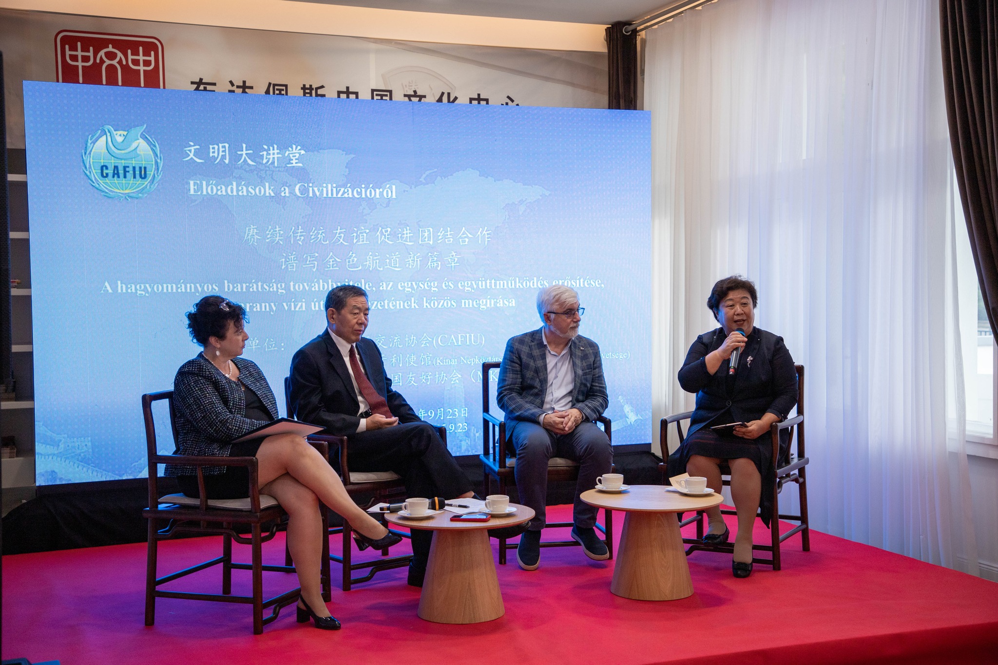 „Civilizációk párbeszéde” címmel rangos eseménynek adott otthont a Budapesti Kínai Kulturális Központ, a Kínai Népköztársaság Budapesti Nagykövetsége,a Kínai Nemzetközi Megértésért Egyesület (CAFIU, 中国国际理解协会) és a Magyar–Kínai Baráti Társaság szervezésében.
